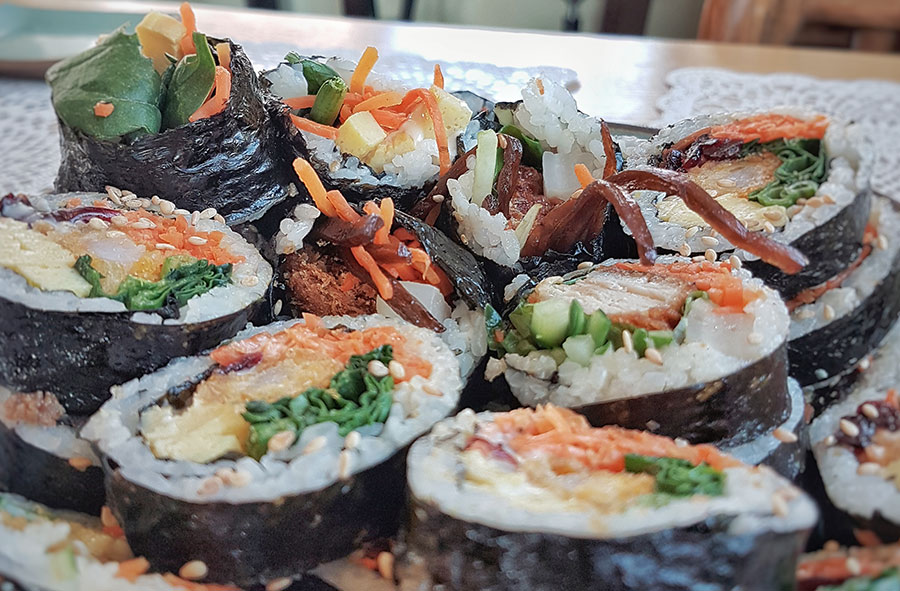 Non è una portata principale, viene mangiato spesso ai picnic o come spuntino e solitamente è accompagnato dal danmuji (단무지), una croccante radice daikon sottaceto dall’intenso colore giallo.