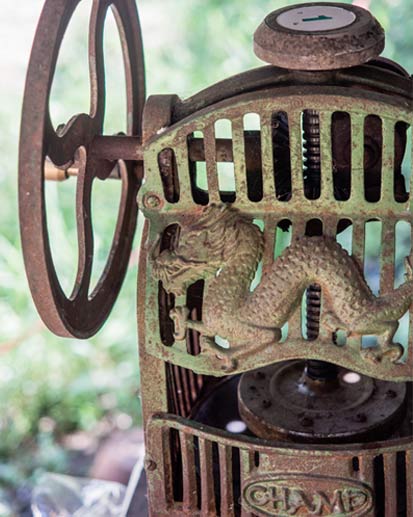 At the beginning there was no the cold ingredient in the recipe, but since everyone started to use the refrigerator the ice has been added and used in every version of Cendol. The device traditionally used to mince it is a hand-cranked iron tool with a very elegant and artistic design (like the one in the picture below), even if today they prefer a more comfortable electric ice crusher.