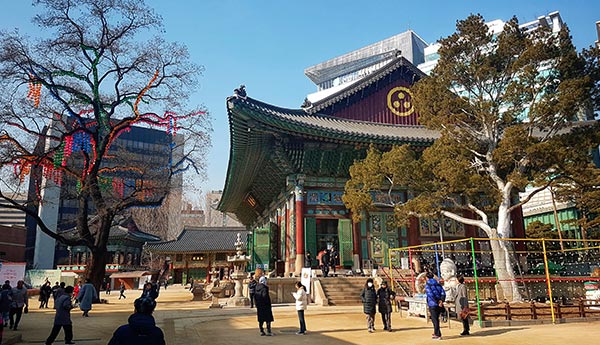 In the center of the bustling city of Seoul, between offices and shops, cafes and restaurants, streets and alleys dotted with people always on the move, lies the beautiful Jogyesa temple (조계사) belonging to the Jogye order of the Korean Buddhism.