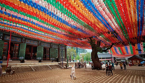 The most interesting time to visit the Jogyesa temple (조계사) is during the lantern festival, which is celebrated around May, based on the lunar calendar. The sacred area and its architectures are decorated with hundreds of colorful illuminated lanterns and rituals, ceremonies, songs and dances are held waiting for the arrival of the parade of luminous paper sculptures that take inspiration from the Buddhist iconography and that they stop in the street in front of the complex of religious buildings.