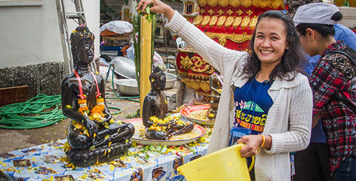 - Boun Pi Mai: Il capodanno del Laos (Pi mai significa anno nuovo in laotiano), la più grande ed importante celebrazione del paese. Parte festa religiosa, dove tutte le statue del Buddha vengono lavate con acqua sacra e parte una divertentissima festa di gavettoni che coinvolge tutti: non avrete scampo, in questi giorni non si può stare fuori in strada senza essere presi di mira da una pistola ad acqua o da qualche secchiata, le strade sono ricoperte di felice gente in festa per tre intere giornate!