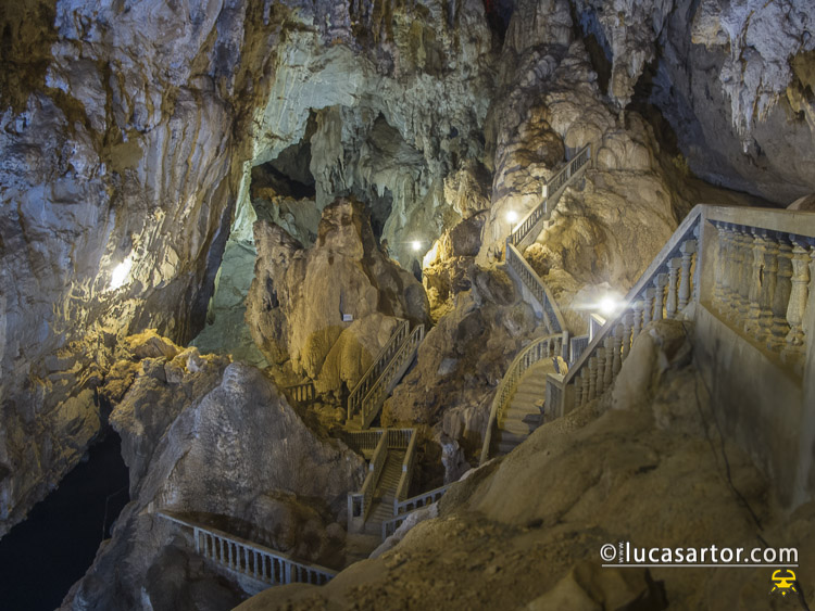 Lasciamo i nostri mezzi all’entrata del parco e prendiamo una barca che ci condurrà nella magnifica esplorazione dell’immensa caverna. Pare di entrare nell’Inferno dantesco mentre si viene inghiottiti dal buco nella parete rocciosa. Non si può non immaginare l’uomo che guida la barca come ad un personale traghettatore di anime!