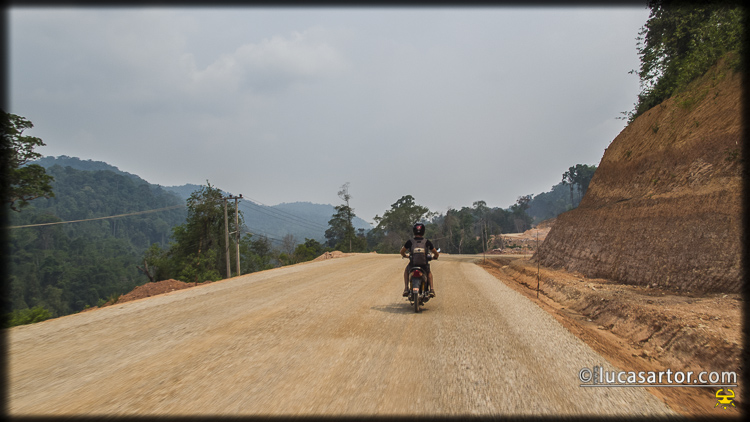 Passiamo poi per la  foresta laotiana e finalmente la strada diventa piacevole e priva di mezzi pesanti.